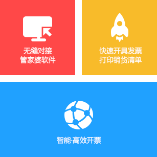 无缝对接管家婆ERP和金税/百旺税控开票系统。直接调取管家婆软件单据明细进行开票。实现智能、高效、快速、准确开具发票。解放财务大量时间、减少财务人员工作量。让开票业务规范、轻松。支持开具增值税专用发票、增值税普通发票、增值税电子发票。