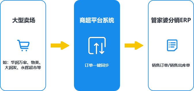 通过商超平台系统,一键把大型商超连锁的订单导入到管家婆分销ERP中,生成销售订单或销售出库单,降低人力成本,提升效率。
