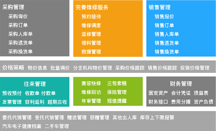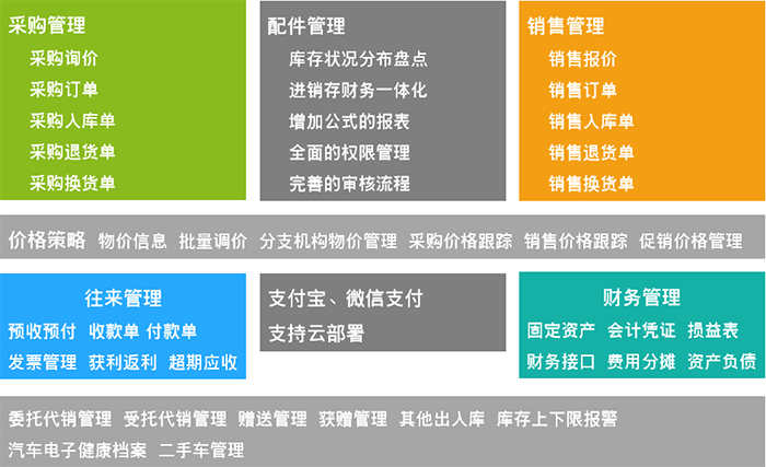 可以实时动态掌握各种销售业务情况比如订单执行情况,进行信用控制;同时,便于分析当前的销售状况,制定销售计划。在此模块中,还包括对委托代销配件的控制。主要处理销售订单、销售开单、销售收款、销售退货等销售业务,和一些和销售有关的报表。